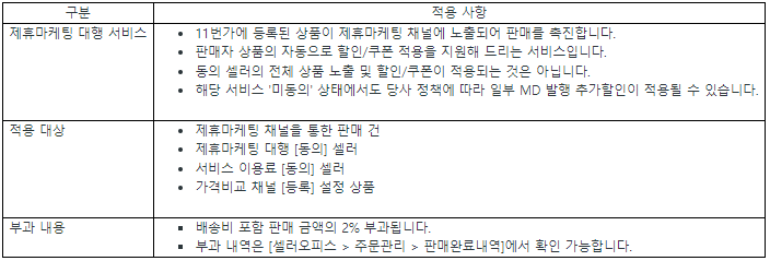 11번가, 제휴마케팅 대행비 부과 채널 확대 안내