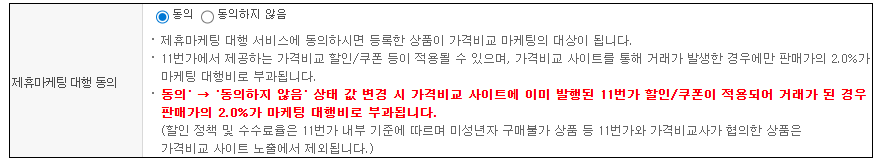 · 메뉴명 : 판매자정보 > 판매자정보관리 > 제휴마케팅 대행 동의