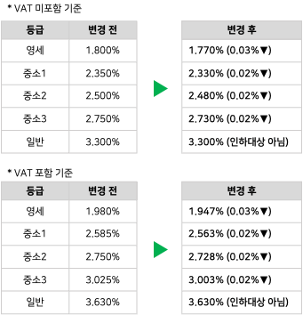 통합 수수료율을 적용하는 당사의 운영 정책에 따라 모든 결제 수단의 수수료율이 인하되며, 아래의 수수료율(%)이 적용됩니다.