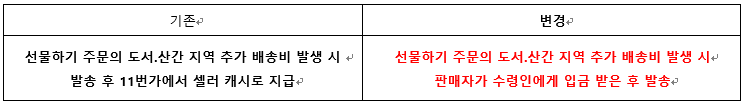 11번가, 선물하기 도서 산간 추가 배송비 정책 변경 안내