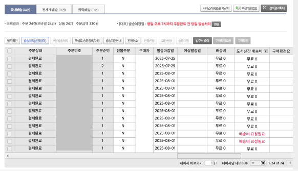 - 주문관리> 배송관리 > 주문목록 內 도서산간 배송비 항목