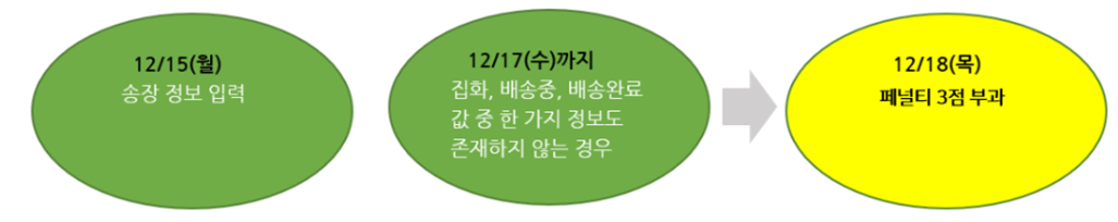 Q. 주문상태가 '배송중'이면 페널티 부과 안되나요? 집화, 배송중, 배송완료 값은 어떤 기준인가요?