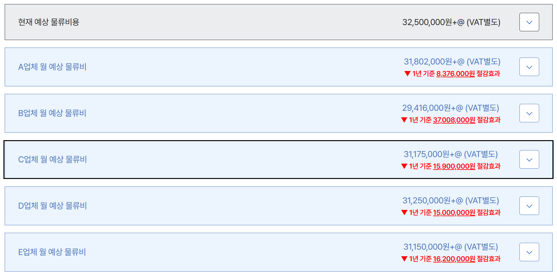 • C업체 전환 후 월 예상 물류비: 31,175,000원