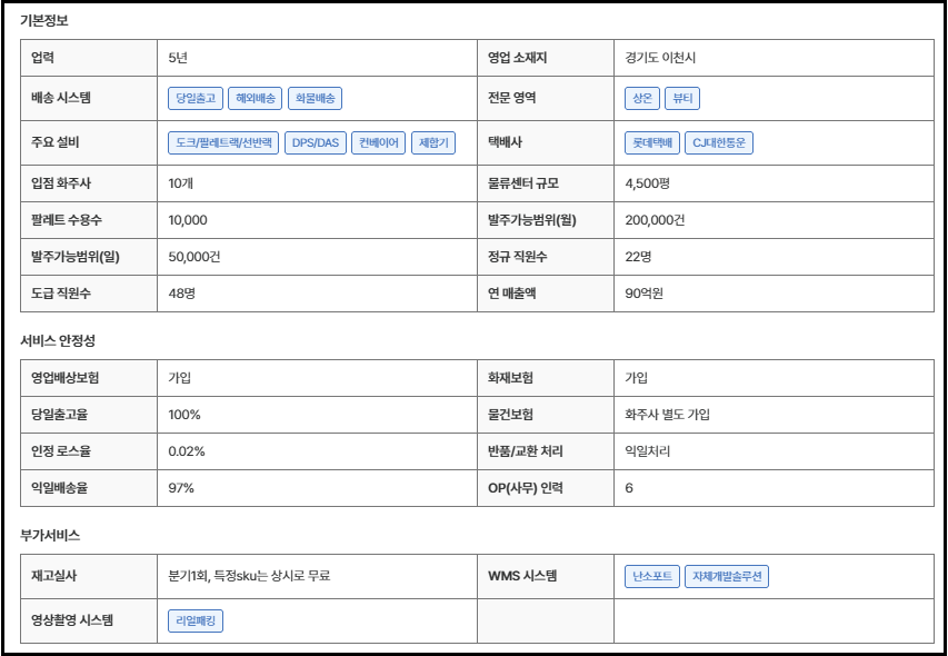 이에 셀러는 단순히 저렴한 단가가 아닌, 출고 정확도와 운영 안정성을 확보할 수 있는 3PL 재선정이 필요하다고 판단했고, 셀러나우의 비교견적 컨설팅을 통해 운영 품질 중심의 B업체로 전환을 결정하게 되었습니다.