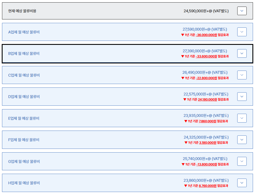 • B업체 전환 후 월 예상 물류비: 27,390,000원