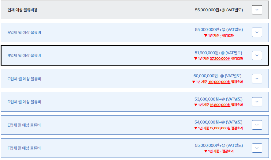 • B업체 전환 후 월 예상 물류비: 51,900,000원