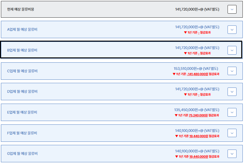 • B업체 전환 후 월 예상 물류비: 141,720,000원